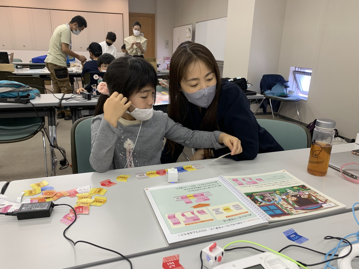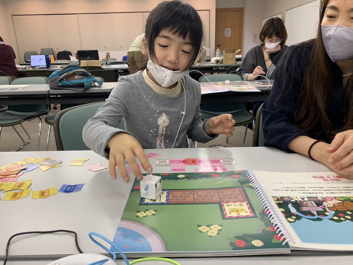 こちらはtoioの 「GoGo ロボットプログラミング ~ロジーボのひみつ~ | タイトル | toio(トイオ)」です。うまくプログラムできたかな?プログラムの命令カードを並べるだけでロボットが動いてくれます。