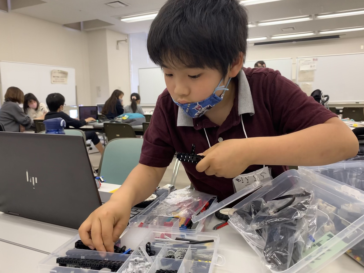 こちらはレゴのマインドストームを使ったロボットプログラミング。レゴを組み立てるのが大好きとのことで、頑張って組み立てて、走るようにプログラミングしてくれました。
