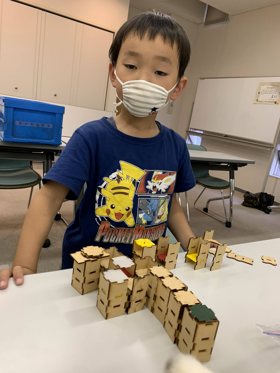 こちらは木製迷路パズル「A Mazeing」チーム。久々の迷路開催でした。久々にやってみて、改めて面白いな〜って思いました。結構みんな夢中で作りましたよ〜。