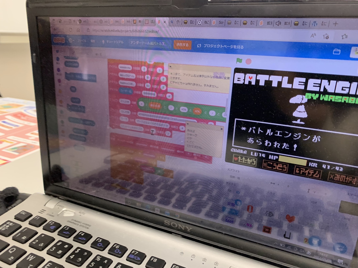 メンタートモさんもiPadからtoioをコントロールして、ダンジョンをクリアするプログラムを見せてくれました〜。結構コードたくさん書いてたみたい〜