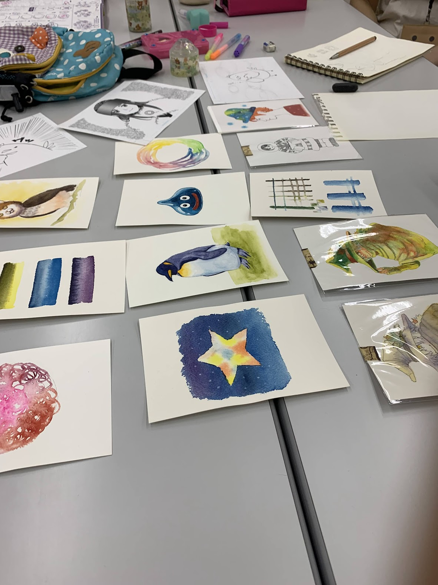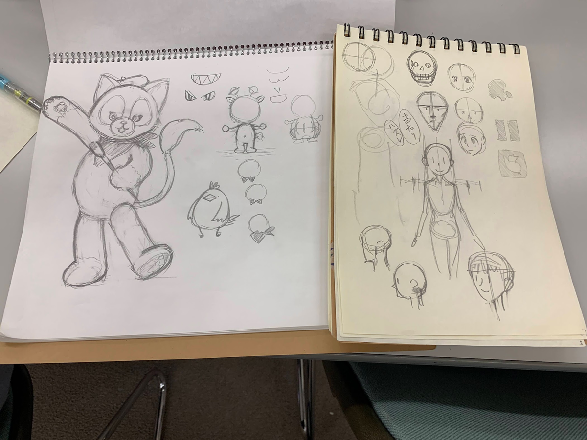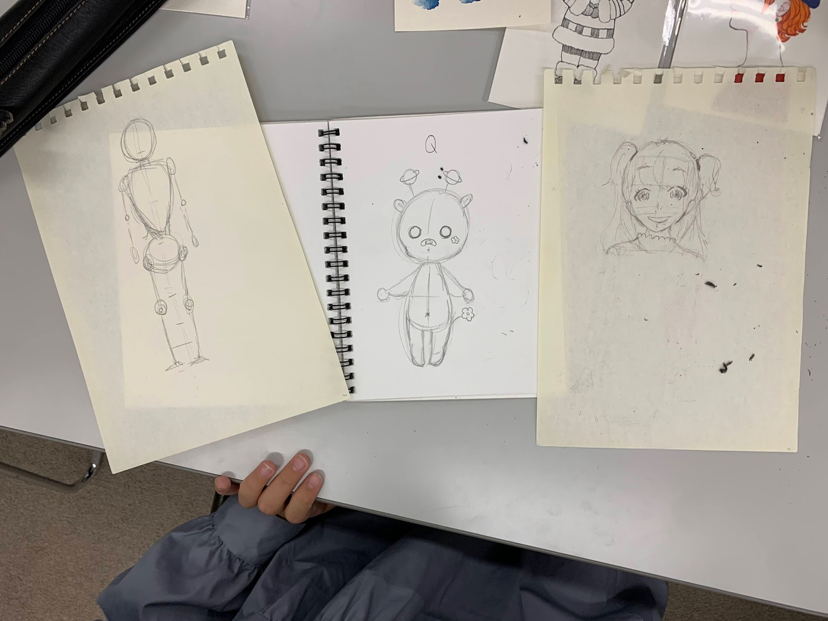 今日は、6等身の人や、可愛いキャラクターを書く練習をしてたみたい。絵が大好きなんだって。すごく上手だね。チャンピオンの1万倍ぐらい上手です。